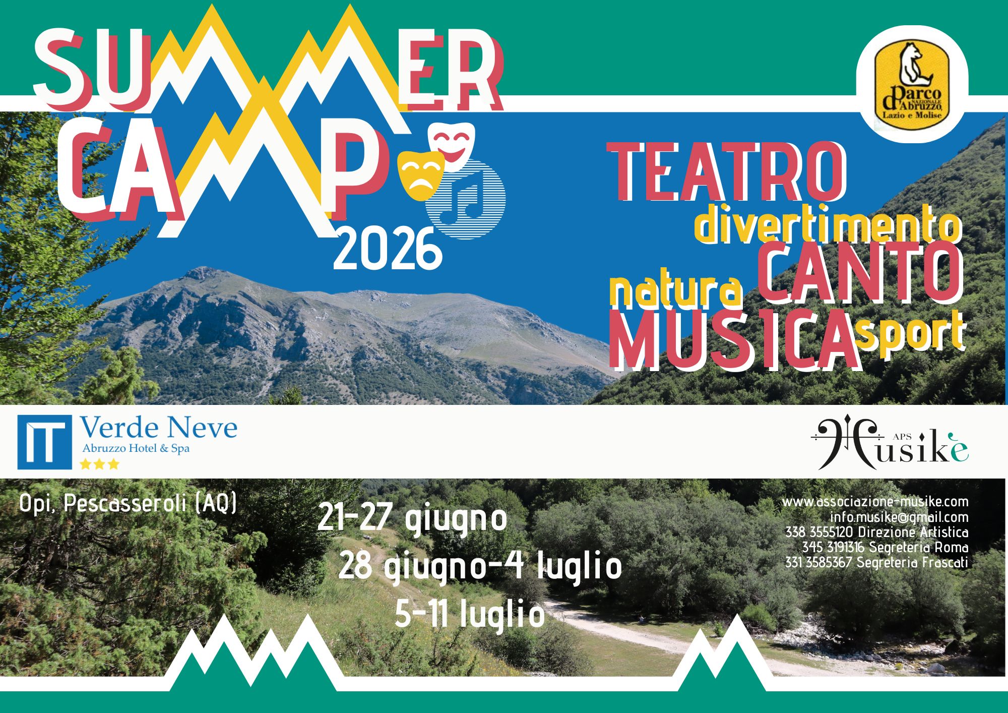 La dodicesima edizione del nostro campus artistico estivo si rivolge a ragazze/i dagli 8 ai 18 anni e si terrà presso l’Hotel Verde Neve  di Opi (Pescasseroli, L’Aquila). Tre sono le settimane a cui è possibile partecipare: domenica 21 – sabato 27 giugno domenica 28 giugno – sabato 4 luglio domenica 5 luglio – sabato 11 luglio I partecipanti soggiorneranno…